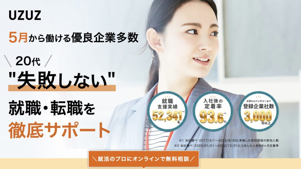 そうならないために、ブラック企業を排除して信頼できる企業のみ紹介してくれるUZUZは強力なサポーターになります。